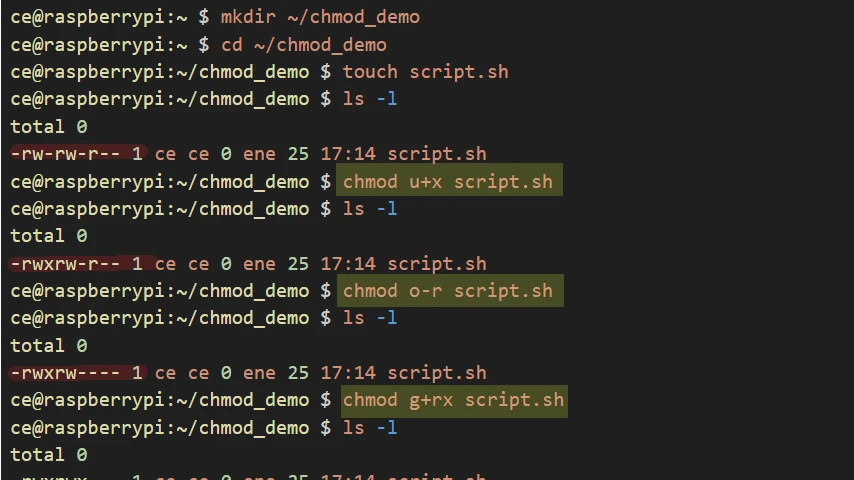 Aprende a usar el comando chmod en Linux con ejemplos prácticos paso a paso. Permisos, notación simbólica, octal y casos reales