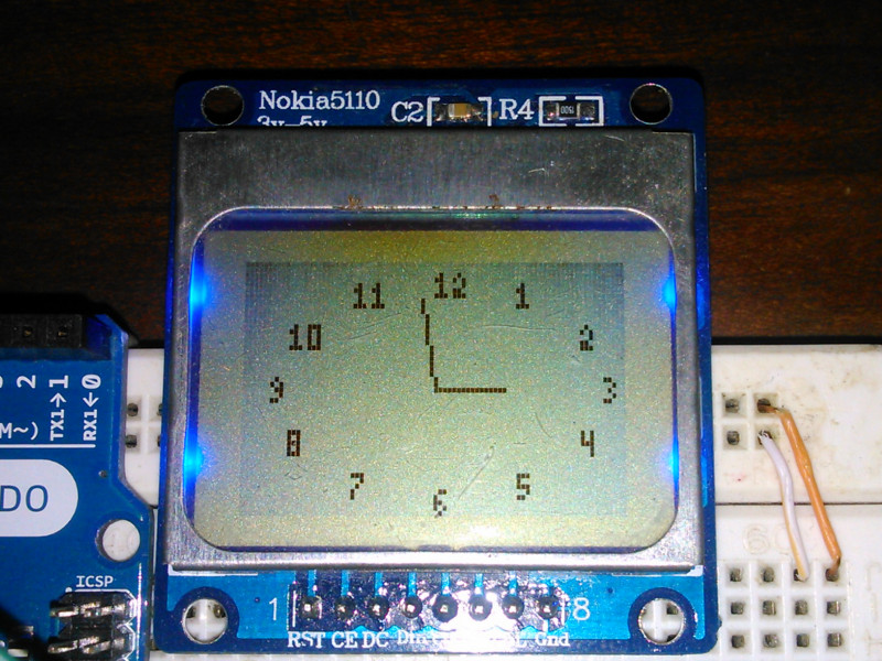 Traemos una práctica en donde podremos implementar lo que hemos aprendido en ejercicios anteriores con nuestro arduino; vamos a crear un reloj análogo que se muestre en nuestro lcd grafico nokia 5110 que trabajamos en post anteriores, donde se pueden realizar las figuras básicas, mostrar letras y números, además usaremos nuestro reloj de tiempo real el DS1307 en donde podemos obtener la fecha y hora actual.