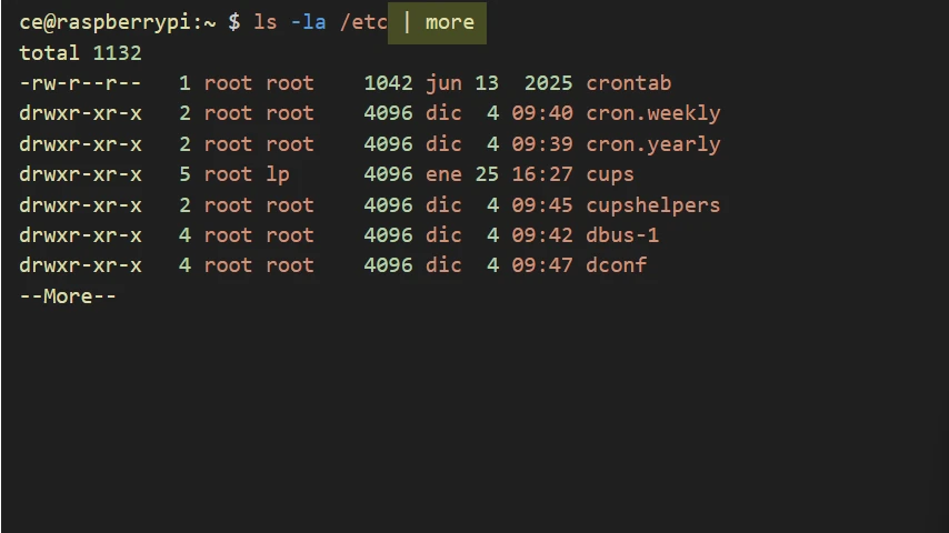 El comando less de linux se usa para mostrar el texto en la pantalla del terminal de línea en línea